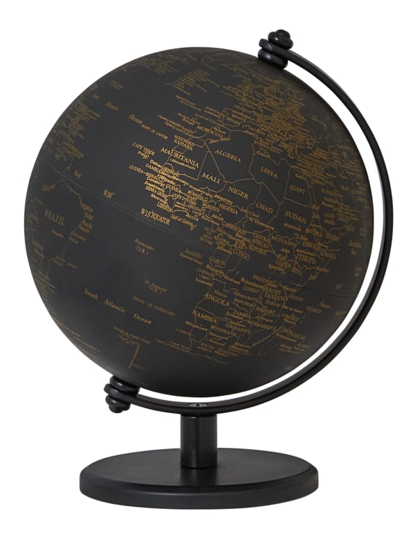 - Attraktives Design: Matter zweifarbiger Globus GAGARIN (13cm Durchmesser) mit goldenen Länderflächen und schwarzen Meeren, in englischer Sprache beschriftet, mit Kontinenten, Ozeanen, Ländern, geographischen Zonen und wichtigen Städten.