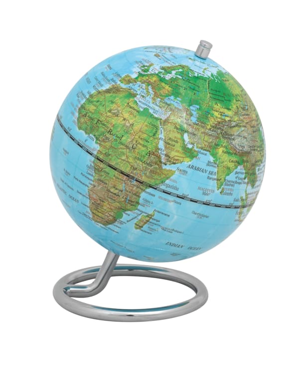 - Hochwertige Verarbeitung: Mini-Globus mit einer handlichen Gesamthöhe von 17cm, drehbar auf einem stabilem verchromten Metallring. Beeindruckendes Design und hochwertige Oberflächen.