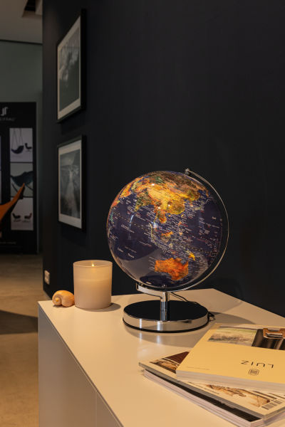Ein attraktiver Blickfang, der sich nützlich macht: Der englisch beschriftete Globus TERRA LIGHT schafft schnelle Orientierung in Ortsfragen und ist mit seiner großen Farbauswahl und seiner integrierten LED-Beleuchtung gleichzeitig ein dekoratives Accessoire für Büro, Wohnbereich sowie Kinder- und Jugendzimmer. Zur weiteren Ausstattung gehören das hochwertig verchromte Metallgestell sowie ein schwarzes Kabel mit Euro-Stecker und Schalter.