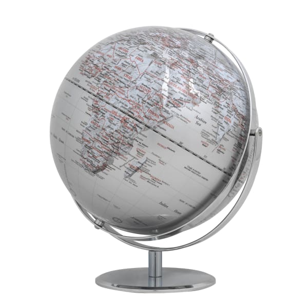 - Attraktives Design: Matter Globus JURI (30 cm Durchmesser) zweiachsig, mit silbernen Länderflächen und schwarzen Meeren in englischer Sprache beschriftet, mit Kontinenten, Ozeanen, Ländern, geographischen Zonen, wichtigen Städten und Gebirgen.