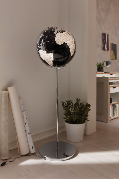 SOJUS LIGHT verbindet edles Design mit Funktion: Der beleuchtete Standglobus mit englischer Beschriftung und plastisch ausgearbeiteten Gebirgsreliefs ist ein stilvoller Blickfang für Wohn- und Geschäftsräume. Die glänzende Weltkugel, das stabile Metallgestell und der verchromte Standfuß stehen für hochwertige Verarbeitung und zeitlose Eleganz. Als Design Globus mit Licht fügt sich SOJUS LIGHT mühelos in unterschiedlichste Raumkonzepte ein. Für alle, die geografisches Wissen und exklusiven Stil kombinieren möchten.