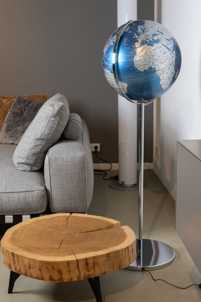 SOJUS LIGHT vereint edles Design mit Funktion: Der beleuchtete Standglobus mit englischer Beschriftung und plastisch ausgearbeiteten Gebirgsreliefs ist ein stilvoller Blickfang für Wohnräume und Geschäftsräume. Die glänzende Weltkugel, das stabile Metallgestell und der verchromte Standfuß stehen für hochwertige Verarbeitung und zeitlose Eleganz. Als Design Globus mit Licht passt sich SOJUS LIGHT in vier Varianten jedem Raumkonzept perfekt an. Für alle, die Wissen und Stil wirkungsvoll kombinieren möchten.