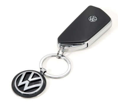 Schlüsselanhänger VW-Logo, rund, zusätzlich 1 Schlüsselring, Metallguss, verchromt, glänzend, schwarz/silberfarben