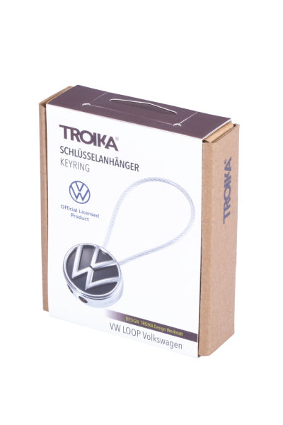 Die Volkswagen-Serie von TROIKA hat Nachwuchs. Klassisch reduziert im Design, innovativ in der Funktion: Der Schlüsselanhänger LOOP nimmt alle Schlüssel sicher an die Drahtschlaufe und hat den Dreh raus. Drahtschlaufe durch das Logo schieben, Schräubchen lösen, Schlüssel auffädeln und wieder festdrehen. Fertig. Aus verchromtem Metallguss mit Emaille, schwarz/silberfarben.