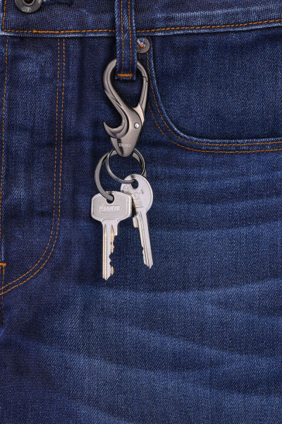 Auf der einen Seite: zwei verschieden große Schlüsselringe für deine Schlüsselorganisation. Auf der anderen Seite: ein stabiler Karabiner zum Befestigen an der Gürtelschlaufe. Mittendrin: ein kräftiger gerundeter Haken, dem so schnell kein Flaschenverschluss widersteht. Ein echter Handschmeichler aus solidem Metallguss mit matt verchromtem Finish.