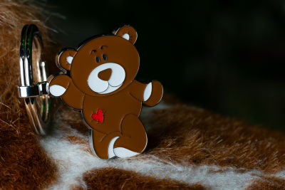 Schlüsselanhänger, Teddybär mit Herz, Emaille, Metallguss, glänzend, braun/silberfarben