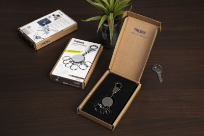 - Die Funktion unseres patentierten Key Organizers: Einfaches Aushaken und Austauschen der Ringe zur Nutzung einzelner Schlüssel – kann durch zusätzliche Ringe erweitert werden (Troika KR-KIT).