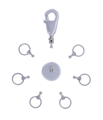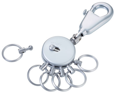 Schlüsselanhänger, rund, inkl. Karabinerhaken, 6 ausklinkbare Ringe, Messing, Metall, Metall/Messing, verchromt, matt, silberfarben
