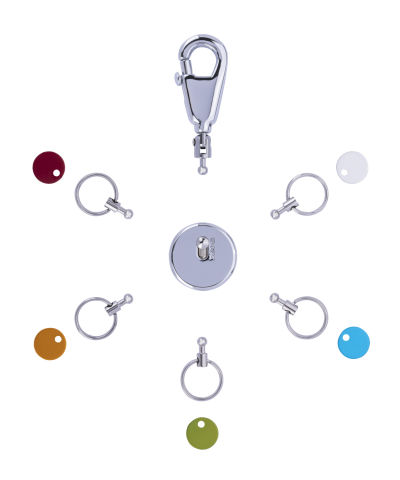 - Die Funktion unseres patentierten Key Organizers: Einfaches Aushaken und Austauschen der Ringe zur Nutzung einzelner Schlüssel – kann durch zusätzliche Ringe erweitert werden (Troika KR-KIT).