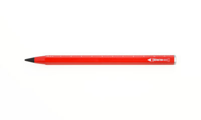 Bleistift-Technik neu definiert. Nie mehr Anspitzen, statt dessen: nachhaltige Endlosschreibspitze in HB für bis zu 20 km Schreiblänge, austauschbar und radierbar. Im typischen CONSTRUCTION-Look mit Zentimeter-/Zoll-Lineal und 1:20- und 1:50-Skala. Aluminium und Metall matt.