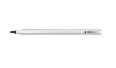 Bleistift-Technik neu definiert. Nie mehr Anspitzen, statt dessen: nachhaltige Endlosschreibspitze in HB für bis zu 20 km Schreiblänge, austauschbar und radierbar. Im typischen CONSTRUCTION-Look mit Zentimeter-/Zoll-Lineal und 1:20- und 1:50-Skala. Aluminium und Metall matt.