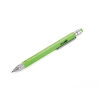 Multitasking-Kugelschreiber, Zentimeter/Zoll-Lineal, 1:20 /1:50 Skala, Wasserwaage, Schlitz-/Kreuzschraubendreher, Stylus, schwarze Mine, Messing, lackiert, neongrün/silberfarben