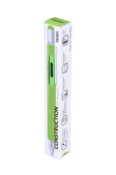 Alles läuft nach Plan Planungshilfe und Werkzeugkoffer in einem! Der Multitasking-Kugelschreiber CONSTRUCTION hat wirklich einiges drauf - und drin. Verschiedene Skalen, Zentimeter- und Zoll-Lineal, Schlitz- /Kreuzschraubendreher, Stylus und Wasserwaage. In Signalfarbe ist der CONSTRUCTION leicht wiederzufinden. Da kann nichts mehr schief gehen!