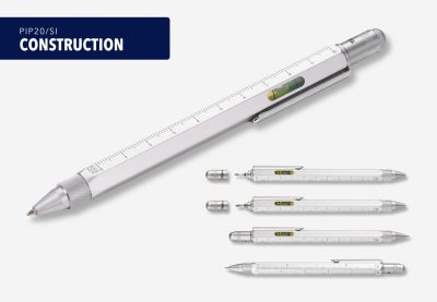 Alles läuft nach Plan Planungshilfe und Werkzeugkoffer in einem! Der Multitasking-Kugelschreiber CONSTRUCTION hat wirklich einiges drauf - und drin. Verschiedene Skalen, Zentimeter- und Zoll-Lineal, Schlitz- /Kreuzschraubendreher, Stylus und Wasserwaage. Da kann nichts mehr schief gehen!