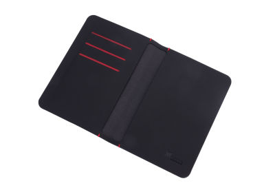 Nahtlos verschweißt und aus weichem, antibakteriell beschichtetem Material – das Etui liegt einfach perfekt in der Hand. In zwei großen und drei kleinen Fächern ist Platz für Reisepass, Boardingdokumente, Impfpass und die Kreditkarten. Natürlich auch an Bord: der Ausleseschutz für RFID-Chips in den Kartenfächern. Kunstleder in Schwarz mit roten Applikationen.