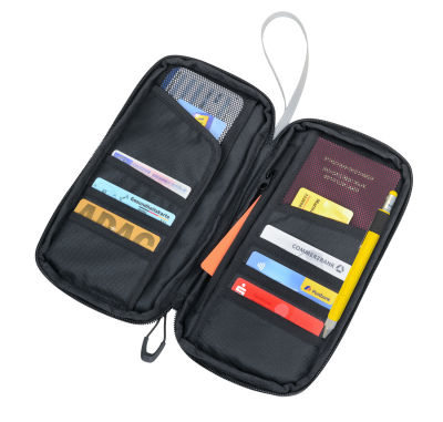 Etui für Reisedokumente, mit wasserfesten Reißverschlüssen und Handschlaufe, stark reflektierend, Fronttasche passend für Smartphone oder Reisepass, 11 Innenfächer für Karten und Reiseunterlagen, Stiftschlaufe, 100% Polyester, Polyester, grau