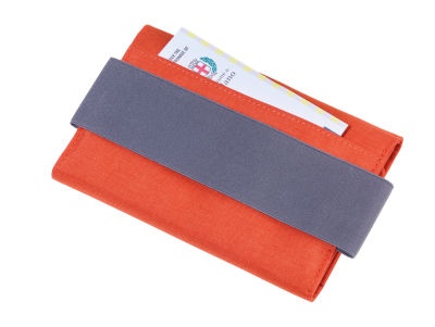 Organizer-Etui für Reisedokumente mit Magnetverschluss, 5 Innenfächer für Reisepass, Kredit- und Visitenkarten + 1 Elastikbandeinschub für Smartphones bis zu 5,5'', 1 Außenfach, 2 Stiftschlaufen, elastische Schlaufe zur Befestigung am DIN A5 Notizbuch oder Trolley, 100% Polyester, Polyester, grau/orange