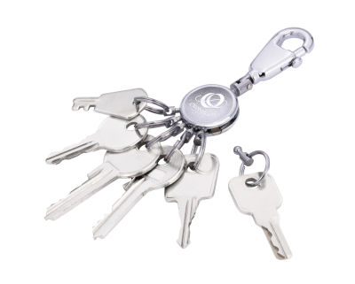 - Die Funktion unseres patentierten Key Organizers: Einfaches Aushaken und Austauschen der Ringe zur Nutzung einzelner Schlüssel – kann durch zusätzliche Ringe erweitert werden (Troika KR-KIT).