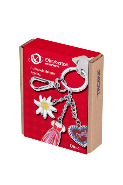 - Unsere Schlüsselringe mit authentischen Oktoberfest-Anhängern wie Dirndl, Lebkuchenherz und Edelweiß bringen die festliche Atmosphäre des weltweit berühmten Oktoberfests direkt zu Ihnen.
