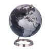Globus mit 25 cm Durchmesser, verchromter Metallfuß in gebürsteter Optik, 23,5 Grad Neigung an beweglicher Achse, Kartenrelief, Kunststoff, Metall, matt, schwarz/silberfarben