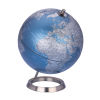 Globus mit 25 cm Durchmesser, verchromter Metallfuß in gebürsteter Optik, 23,5 Grad Neigung an beweglicher Achse, Kartenrelief, Kunststoff, Metall, matt, blau/silberfarben