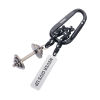 Schlüsselanhänger mit Karabinerhaken, 2 Anhänger an dekorativem Kletterseil: Hantel und Plakette "NEVER GIVE UP", Metallguss, verchromt, matt, schwarz/silberfarben