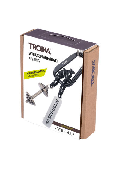 Gib niemals auf! Mit dieser Botschaft am Schlüsselring zusätzlich zum Hantel-Charm hat man den täglichen Reminder: Ich kann es schaffen, ich kann die Ziele erreichen, die ich mir gesetzt habe, sei es in punkto Fitness, Gesundheit oder in anderen Lebensbereichen. Gefertigt aus einer Zinklegierung, hat der Hantelanhänger eine Patina, die vermittelt: ich bin in Gebrauch. Mit dekorativen Schnüren sind die beiden Anhänger befestigt an einem praktischen Karabiner.