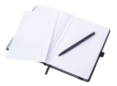 - Notizblock im DIN A5 Format mit geprägtem 20-cm-Lineal - Stift und Block ergeben ein starkes Team.