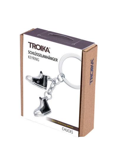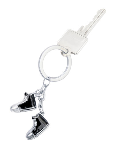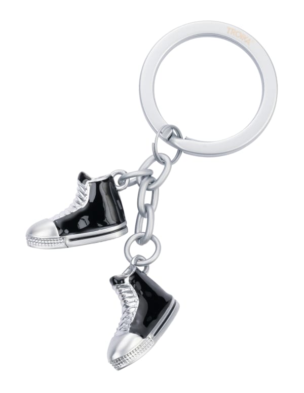 Schlüsselanhänger mit 2 Anhängern, Freizeitschuhe "CHUCKS", Emaille, Metallguss, verchromt, matt, schwarz/silberfarben