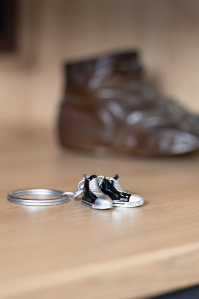 Der Schlüsselanhänger für Sneaker-Liebhaber. Dieser trendige Schlüsselanhänger mit den ikonischen Mini-Chucks bringt den urbanen Look direkt an den Schlüsselbund. Liebevoll in Metall gearbeitet, glänzen die kleinen Turnschuhe in klassischem Schwarz und Silber und setzen ein modisches Statement. Perfekt für alle, die den lässigen Street-Style lieben und diesen auch im Alltag zeigen wollen. Ob für Sneakerheads oder Fashionistas – mit diesem Anhänger ist die Leidenschaft für Sneakers immer dabei!