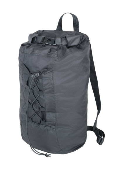 Trekkingrucksack faltbar (platzsparend im Innenfach verstaubar), ultraleichte 140g, 100% Ripstop Nylon mit TPU coating, wasserdicht, großes Hauptfach mit Rolltop Verschluss, Fassungsvermögen 18 Liter, Elastikbänder für zusätzliche Aufbewahrung von z.B. Jacke oder Helm, Handschlaufe, verstellbare Schultergurte, Notfallpfeife, Nylon, schwarz