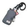 Smartphone Umhängetasche aus recyceltem Meeresplastik, großes Fach für das Smartphone, weiteres Fach für andere Utensilien (Visitenkarten, Schlüssel, Bargeld, Kopfhörer, etc.), verstellbarer Gurt mit Metallkarabinern, 100% rPET, recyceltes Meeresplastik, dunkelgrau