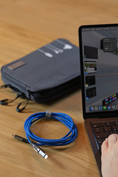 SPEEDY XL – Mit 2 Metern Länge bringt dieses 100 Watt Power Delivery-Kabel maximale Flexibilität in den Alltag. Ob im Büro, auf dem Sofa oder im Bett – die Entfernung zur Steckdose spielt keine Rolle mehr! Dank des robusten gewebten Materials aus recyceltem Polyester, ist das Kabel nicht nur nachhaltig, sondern auch extrem langlebig. Perfekt für schnelles Laden und Datenübertragung bei Smartphones, Tablets und Laptops (USB-C). Das SPEEDY XL Kabel vereint stilvolles Design mit praktischer Reichweite für ein entspannteres Leben. In drei verschiedenen Farben erhältlich und mit zusätzlichem Lightning-Adapter.