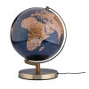 Globus mit 25 cm Durchmesser, integrierte Beleuchtung, inklusive Ladestecker mit GaN - und Schnellladetechnologie Power Delivery, 20W mit USB-C und USB-A Anschluss, antikgoldfarbener, gebürsteter Metallfuß, bewegliche Achse, Kunststoff, Metall, glänzend, bronzefarben/dunkelblau