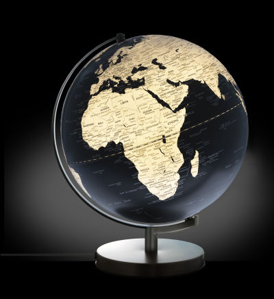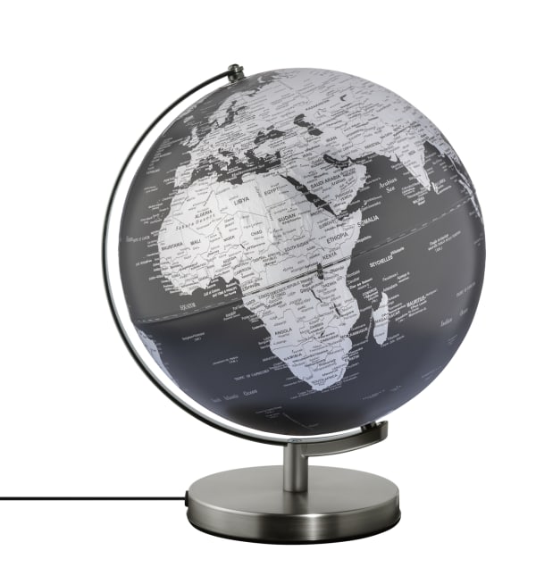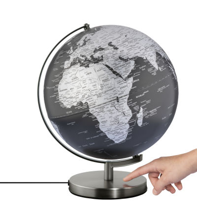 - Attraktives Design: Matter LED-Globus STELLAR LIGHT TOUCH (30 cm Durchmesser) mit beleuchtetem Kartenbild. Die Länderflächen in silber und die schwarzen Meere sorgen für einen faszinierenden Kontrast. Beschriftung in englischer Sprache mit Angaben zu Kontinenten, Ländern, Ozeanen, geografischen Zonen, wichtigen Städten und Gebirgen. Die Gebirge sind auf der Oberfläche fühlbar hervorgehoben.