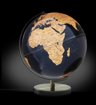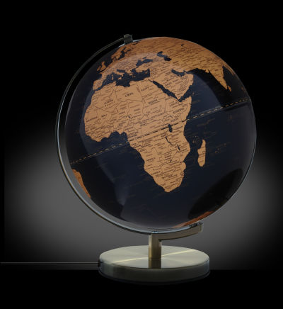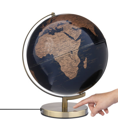 - Attraktives Design: Matter LED-Globus STELLAR LIGHT TOUCH (30 cm Durchmesser) mit beleuchtetem Kartenbild. Die Länderflächen in bronzefarben und die dunkelblauen Meere sorgen für einen faszinierenden Kontrast. Beschriftung in englischer Sprache mit Angaben zu Kontinenten, Ländern, Ozeanen, geografischen Zonen, wichtigen Städten und Gebirgen. Die Gebirge sind auf der Oberfläche fühlbar hervorgehoben.