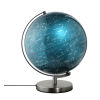 Globus mit 30 cm Durchmesser, integrierte Beleuchtung in 3 Helligkeitsstufen mittels Touch Funktion, inklusive Ladestecker mit GaN - und Schnellladetechnologie Power Delivery, 20W mit USB-C und USB-A Anschluss, verchromter, gebürsteter Metallfuß, Karte mit Sternensystem, bewegliche Achse, Kunststoff, Metall, glänzend, blau