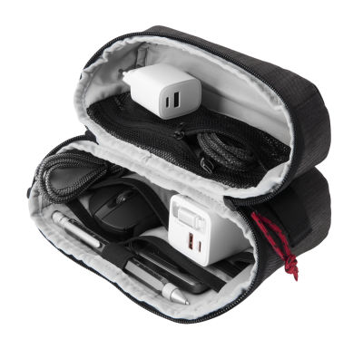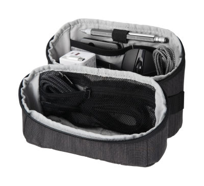 Kabeltasche für Elektronikzubehör, 1 Fach, umklappbar zu 2 Ebenen, mit 2-Wege Reißverschluss, 1 Netzfach mit Reißverschluss, 1 Stiftschlaufe, 6 offene Fächer in verschiedenen Größen für Powerbank, Maus, Speichermedien, Visitenkarten, Ladekabel etc., offene Fronttasche für z.B. das Smartphone, Henkel und Strap zur Befestigung am Trolley, 100% Polyester, Polyester, anthrazit/schwarz
