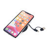 Induktives Ladegerät für iPhone®, Apple Watch® und AirPods®, schnellladefähig bis zu 15W, kompatibel mit MagSafe, mit integriertem, praktisch verstaubarem USB-C/USB-A Ladekabel (Gesamtlänge 60 cm), Kabel textilummantelt (Netzstruktur), recyceltes Polyester, ausklappbarer Metallring auf der Rückseite (Aufstellfunktion), inkl. zusätzlichem MagSafe Metallring mit 3M Klebefläche zur individuellen Befestigung an allen gängigen Smartphones, Kunststoff, recyceltes Polyester, schwarz