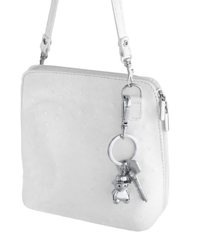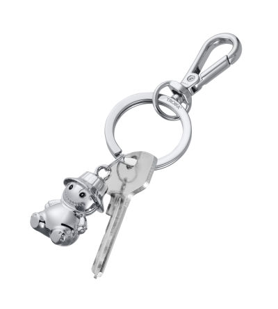 Taschenanhänger / Schlüsselanhänger mit Karabiner, kleines Monster, Metallguss, verchromt, glänzend, silberfarben
