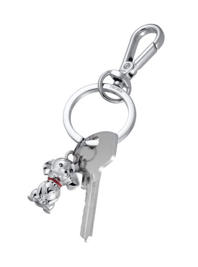 Taschenanhänger / Schlüsselanhänger mit Karabiner, kleiner Hund, Metallguss, verchromt, glänzend, silberfarben