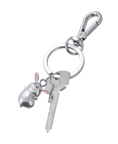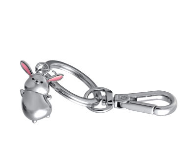 Taschenanhänger / Schlüsselanhänger mit Karabiner, kleiner Hase, Metallguss, verchromt, glänzend, silberfarben