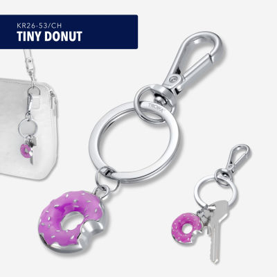 Taschenanhänger / Schlüsselanhänger mit Karabiner, kleiner Donut, Emaille, Metallguss, verchromt, glänzend, lila/silberfarben