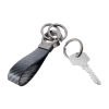 Schlüsselanhänger mit praktischem "Klick-Verschluss", Kunstlederschlaufe in Carbon Optik, 3 Schlüsselringe, Metall, Polyurethan, verchromt, matt, Carbon Optik