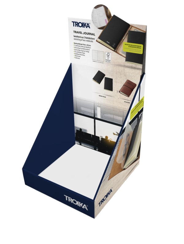 Thekendisplay, für 6 x TROIKA BULLET JOURNAL (BTJ25/BR) und 4 x 2er-Set Ersatz-Notizbücher (/BOOK BTJ25), zur Selbstbedienung, Pappe, bedruckt, matt, mehrfarbig