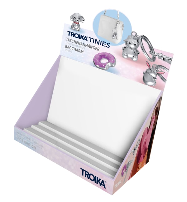 Thekendisplay für 12 x TINY Taschenanhänger (KR26-5./CH), zur Selbstbedienung, Pappe, bedruckt, matt, mehrfarbig
