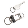 Schlüsselanhänger mit 3 Schlüsselringen in 2 Größen, Schiebeverschluss zur einfachen Schlüsselorganisation, Verschieben des Mittelteils zu beiden Seiten hin gibt Ringe frei, Metallguss, glänzend, gunmetal/schwarz