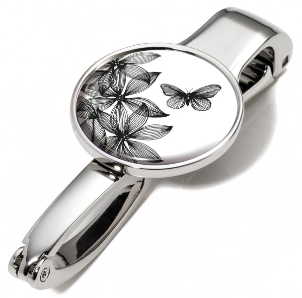 Federleicht Dieser dekorative Handtaschenclip macht Ihre Lieblingstasche unverwechselbar - und verschafft ihr einen sicheren Platz. Sie können ihn an der Tasche befestigen und bei Bedarf bis 5 kg daran aufhängen. Der praktische Feder-Mechanismus hält von innen sogar auch noch Ihren Schlüsselbund. Praktisch! Schwarz-weiß setzt ein Statement. Zurückhaltend und filigran, beinahe künstlerisch. Das ist Natur, die keine Farbe braucht.
