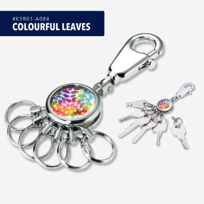 Schlüsselanhänger mit Karabinerhaken, Motiv: COLOURFUL LEAVES, 6 auswechselbare Ringe, Metall, verchromt, glänzend, mehrfarbig