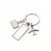 Schlüsselanhänger mit 3 Reise-Anhängern, mit Motiv, Flugzeug, Koffer, Gepäcklabel, Metallguss, verchromt, glänzend, silberfarben